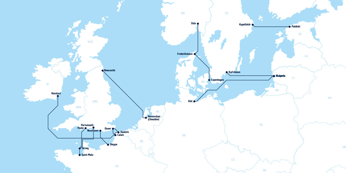 DFDS - the World’s Leading Ferry Operator - offers multiple ferry routes with crossings from popular European ports in Europe to the UK, as well as routes in Scandinavia and across the Baltic Sea.