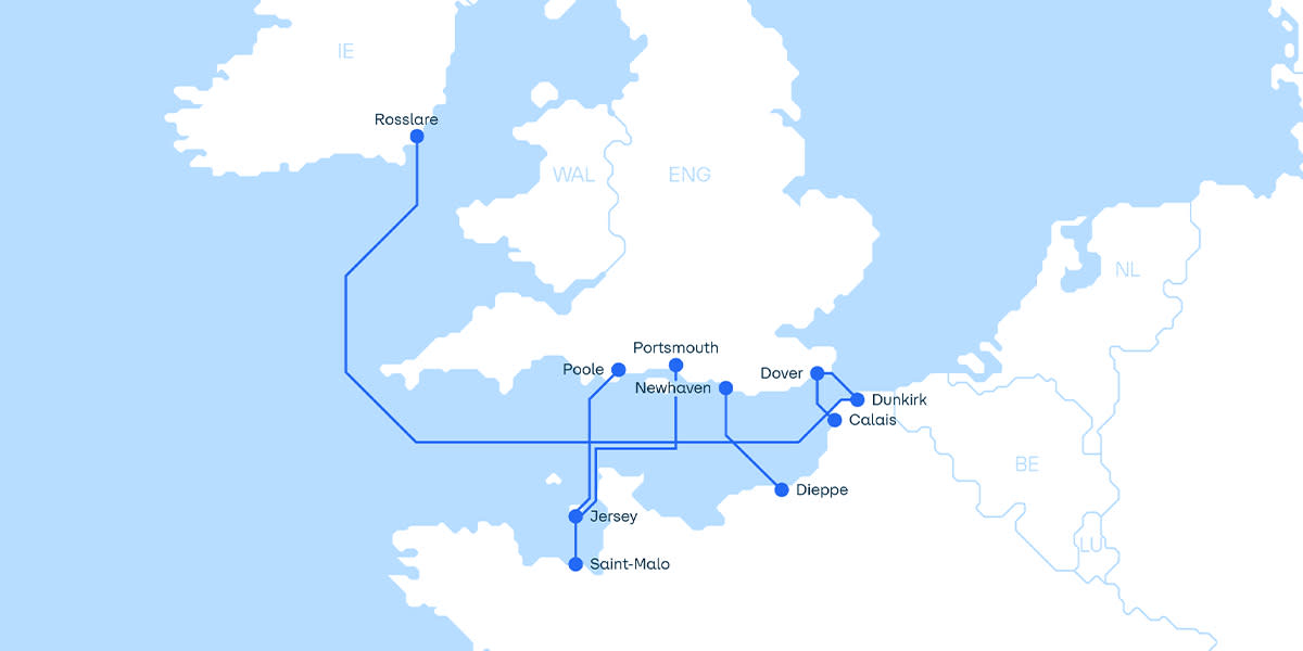 Our ferry crossings to France include Dover - Calais, Dover - Dunkirk, and Newhaven - Dieppe.
