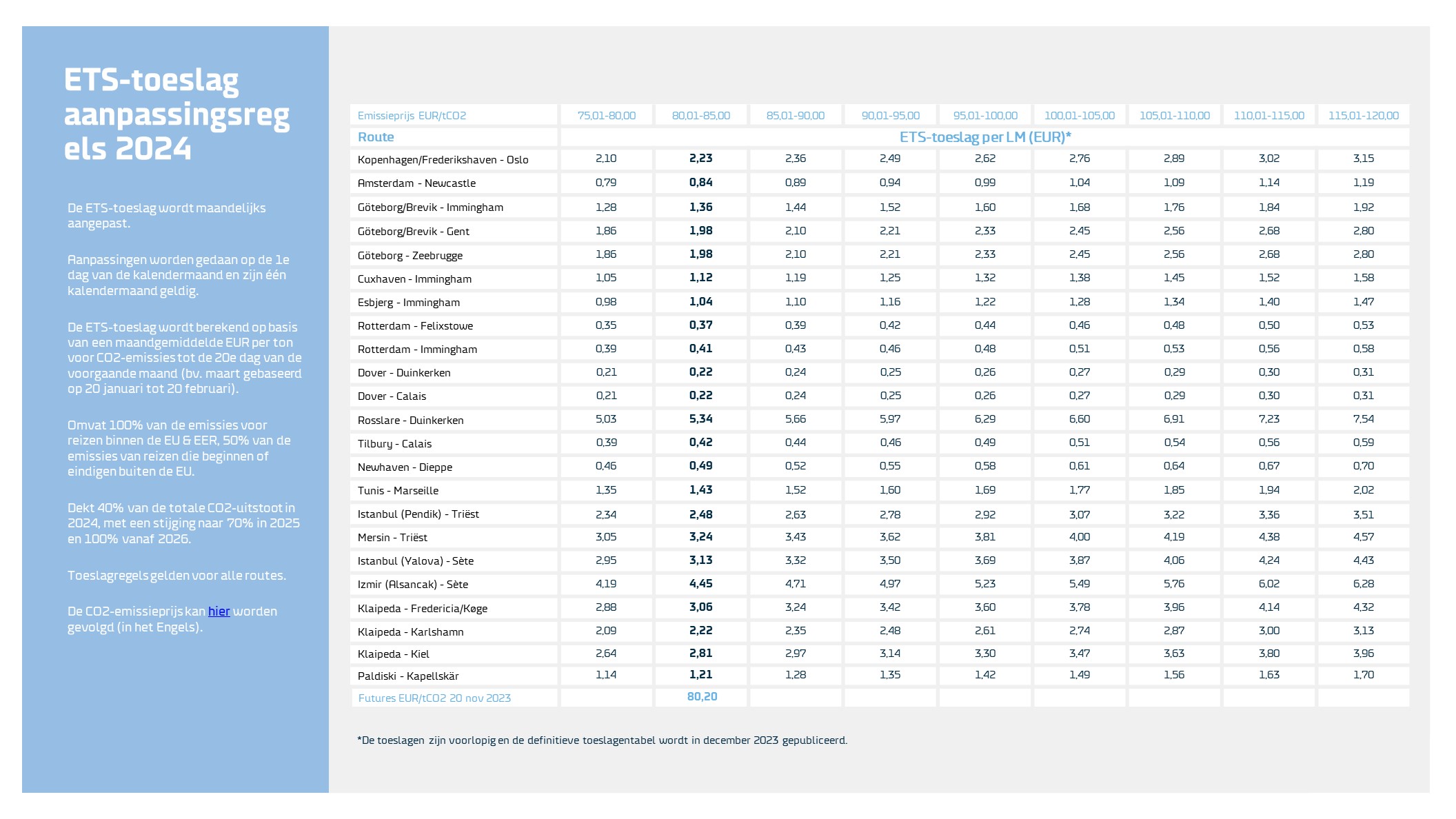 De ETS-heffingen worden nog steeds maandelijks aangepast aan de verwachte vrachtvolumes en emissies voor elke route.